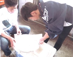 在课堂上,老师们向学生们展示了新型绘画玻璃贴画的制作过程和方法,在和孩子们共同绘制的过程中,手把手地教孩子们进行制作.看着玻璃上贴满了各式各样成品时,孩子们露出满意的笑容.此外,我校学生在和孩子们一起玩泥巴,做陶艺.孩子们都抢着和大哥哥一起学习。