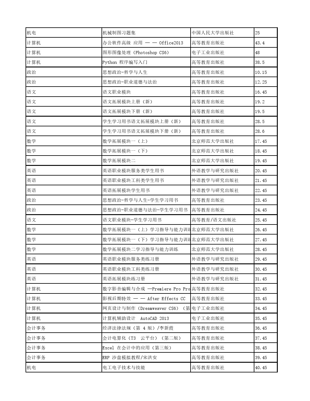 侯马市职业中专学校选用中职教材目录