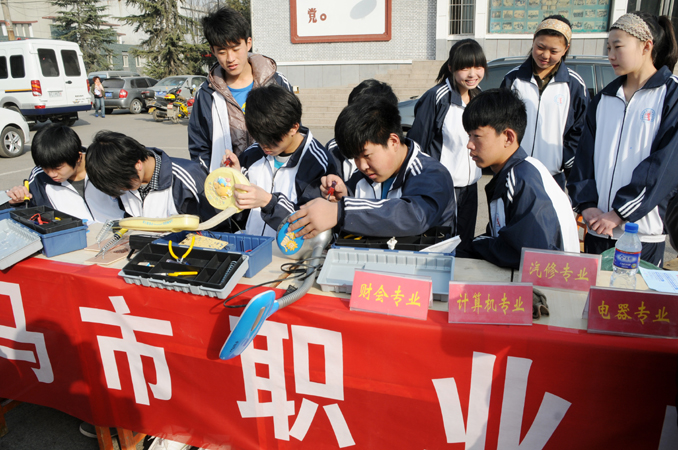 2013年3月5日,我校电器、汽修、财会、美术等专业的学生,在市委礼堂前参加学雷锋便民服务活动。同学们现场为市民服务,解答行人的提问,通过这次活动,弘扬了雷锋精神,同学们也得到了锻炼。